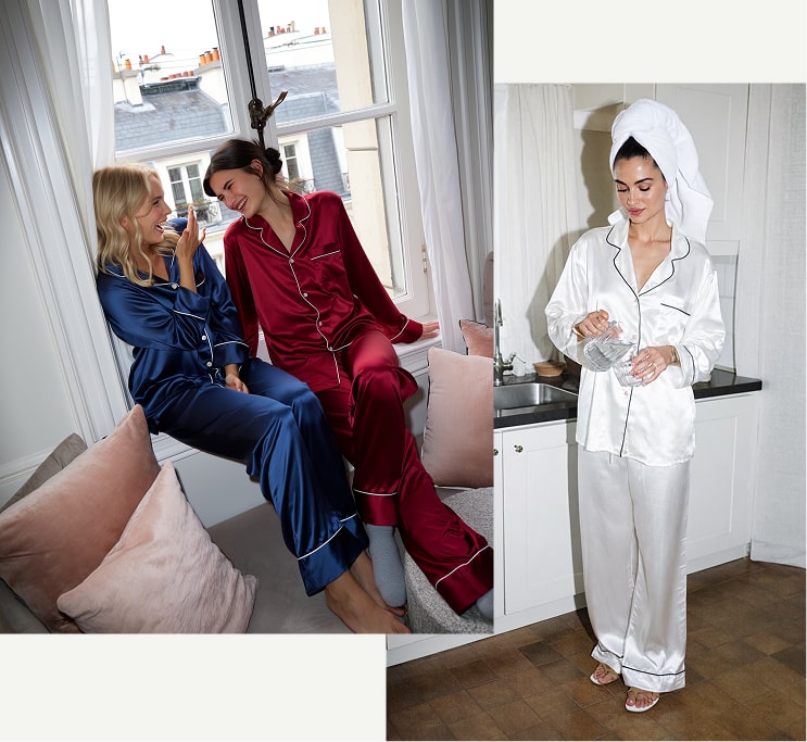 Unsere Pyjamas fallen größengerecht aus und haben einen entspannten, leicht fließenden Schnitt.